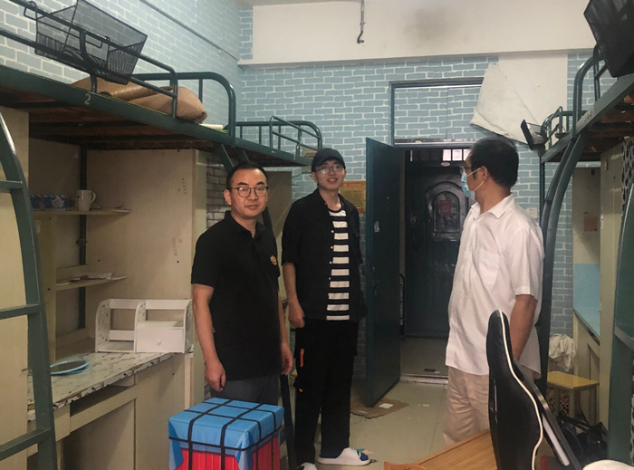 本网讯 7月3日,机电学院院领导和毕业班辅导员深入2020届毕业生宿舍走访,详细了解毕业生学习、生活、就业和思想情况,加强毕业生安全教育,引导返校毕业生文明离校。