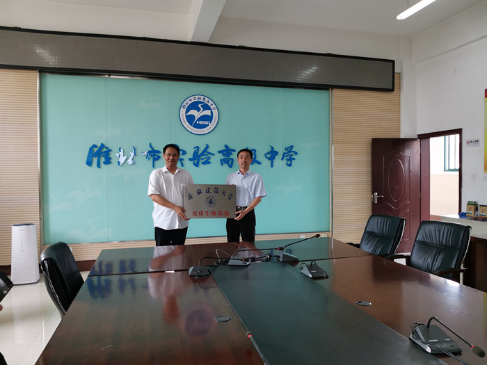 徐军书记还与淮北实验中学校长池永平举行了座谈会。徐军就学校近些年的招生情况进行了介绍,并就学校今后几年的招生数量、政策、分数线等问题与池永平校长进行了交流沟通。最后,与池永平校长签署了ku游官方优质生源基地的协议书,举行了挂牌仪式。