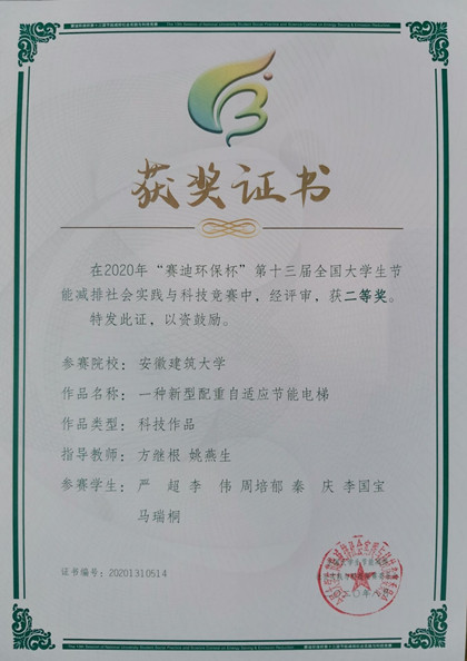 因为疫情影响,本次比赛采取线上、线下相结合的方式进行,为更好的为参赛学生服务,由环能学院牵头联合机电学院克服困难,开展了宣传发动、团队组织、竞赛辅导、校内选拔、作品优化、资料提交等一系列工作,并协调各部门为学生返校与外出参赛提供便利。最终。机电学院17机械设计制造及其自动化专业严超团队的作品“一种新型配重自适应节能电梯”以良好的创新性、实用性、兼容性和可推广价值、商业价值、生态效益及社会效益在决赛中受到评审专家的认可,获得全国二等奖,学校获得优秀组织奖。