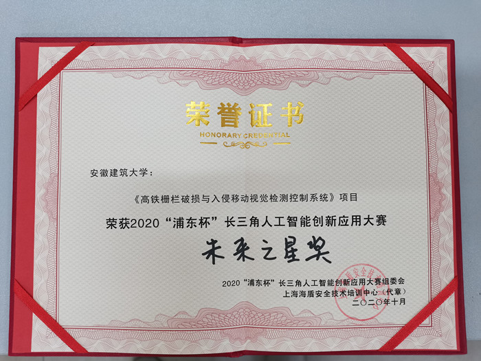 本网讯 2020年10月31日,我院朱卫国、周平两位老师组建ku游官方“绝地战狼”团队,参加了在上海浦东新区举行的2020“浦东杯”长三角人工智能创新应用大赛,参赛作品是《高铁栅栏破损与入侵移动视觉检测控制系统》。