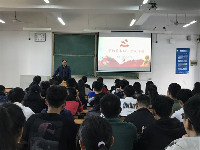 本网讯 为在大学生中加强党的启蒙教育,调动新生入党积极性。11月4日,机电学院在逸夫楼5120教室举办党的基本知识普及讲座,此次讲座主要针对20级新生和部分19级学生骨干,学院党委书记参加讲座并动员讲话。