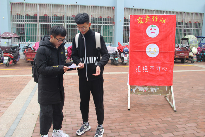 活动中,学院志愿者走进宿舍、食堂向广大同学宣传“光盘行动”的意义和知识,号召每个人都争做光盘行动的倡导者,影响带动身边的亲人和朋友加入到爱粮节粮的行动中来,相互监督,一起杜绝“舌尖上的浪费”。并组织学院同学在微信群、QQ空间等网络媒体上上传光盘打卡照片,并对优秀团员进行了奖励。