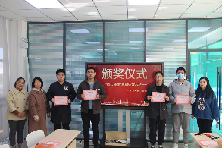 徐良宇、马浩宇等五位同学获得一等奖,陆在宽、李锐等六位同学获得二等奖,郝志祥、彭宇阳等七位同学获得三等奖。机电学院学工办主任江侠老师,辅导员江双老师和杨慧老师为获奖学生颁发荣誉证书,向受到表彰的学生表示祝贺,对同学们所展现的积极向上的精神状态及和谐温馨的寝室氛围表示认可。