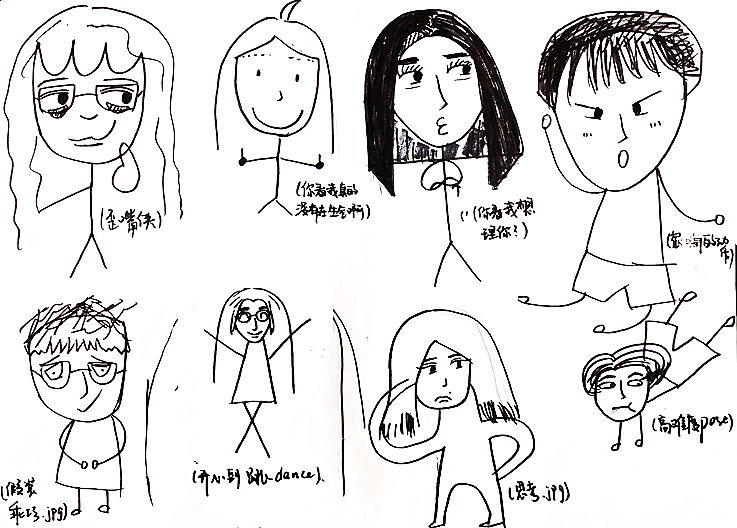 我以简笔画的形式,用幽默滑稽的风格描绘出了我眼中的自己和同学们的样子。我眼中的我,开心自在,阳光明媚,不去在意别人的眼光。我的同学们,有的内敛文静,像冬日里的一束暖阳,跟她们相处总能让我感到很舒适;有的活泼爱闹,跟她们相处总是像在拍摄“武打戏”,但我总是乐在其中。我爱这样的我,也爱着我的同学们。(via.李欣然)