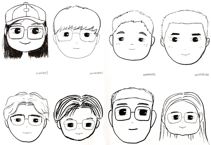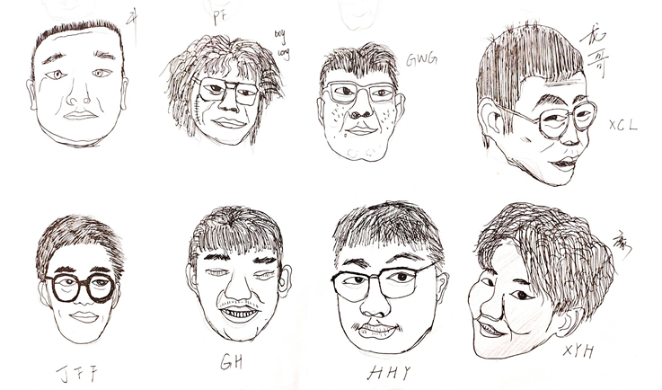 相对内向的我转了专业,不熟悉的班级和不熟悉的同学,我第一个便画了我自己。慢慢地,我又认识了班长、学习委员等人,我画他们,似乎只因他们对我来说比较熟悉,并没有什么其他原因。但其实我错了,我画他们是因为他们成为了不可或缺的同学和朋友,所以我想尽量把他们画的好看一些。(via.葛运祎)