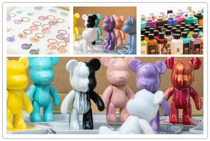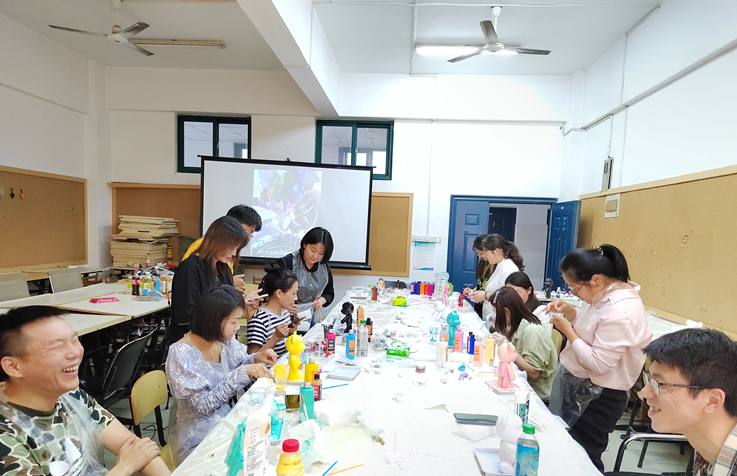 工业设计系杨柳老师向教职工们详细讲解了制作流体熊、饰品、挂件的方法和技巧,老师们跟随讲解,一番忙碌后,一个个色彩缤纷的流体熊展现在大家面前,沉浸式制作的过程中让大家感到治愈又解压,活动期间教职工氛围热烈,展现了教职工的艺术水平与风采。