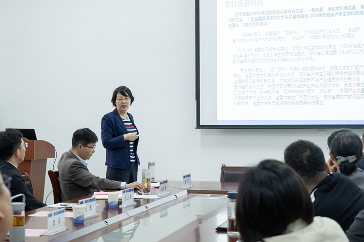 院长张润梅做学院2019年至2021年创新创业工作报告,她从学院学科竞赛及大学生创新创业训练计划的数据统计、“双创”教育工作的主要做法、存在的问题及今后的努力方向等四个方面汇报了机电学院近年来“双创”教育工作开展情况;各学科竞赛团队负责人分别汇报了所带团队参加竞赛取得的成果、经验及今后工作设想。各职能部门负责人对机电学院“双创”工作给予了高度评价,并提出了宝贵的意见和建议,表示将一如既往的大力支持机电学院开展“双创”教育工作。