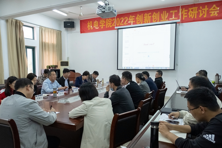 本网讯 为提高创新创业训练计划的实施成效,促进大创项目及学科竞赛成果产出,不断提升学院创新创业教育水平和人才培养质量,机电学院于5月11日召开2022年创新创业工作研讨会。副校长闵杰亲临指导,学校教务处、团委领导应邀出席,机电学院党政领导、学科竞赛团队负责人及指导教师代表参加会议。