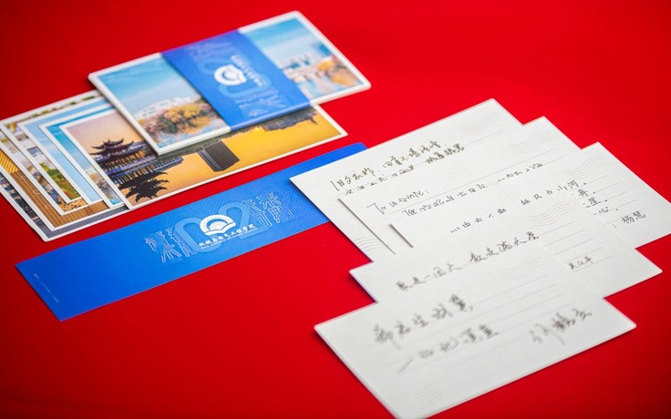 愿有前程可奔赴,亦有岁月可回首。一份暖心的礼物,一句真诚的祝福,是嘱托,更是期许。学生的座位旁都放着学院赠给毕业生的专属纪念卡册,明信片正面是风景如画的建大美景,背面是学院领导和辅导员亲笔书写的毕业生赠言。一图一景,一笔一划,纸短情长,承载着校园的青春回忆,寄托着母校的殷切期望。学院还精心为所有毕业生送出印有机电学院Logo的文化衫,寓意着母校永远在“我”身边,愿机电学子心系家国,眼里有光、脚下有路、心中有方向。