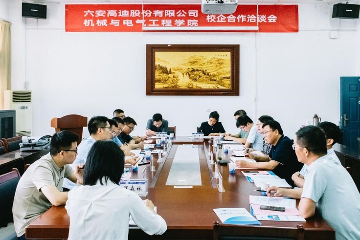 本网讯 6月21日下午,安徽省高迪循环经济产业园股份有限公司(以下简称高迪股份)总经理李中辉一行应邀来到机电学院,就共建联合创新平台事宜进行座谈交流。机电学院院长张润梅、副院长黄磊及相关系室老师参加了会议,会议由副院长陈中主持。