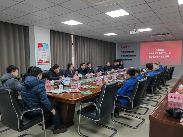 查正旺对黄显怀一行表示热烈欢迎,介绍了企业的发展历程、产品研发和“打造全球化的受人尊敬的食品包装行业优秀供应商”的经营理念,希望学校帮助解决企业创新研发中的技术难题。