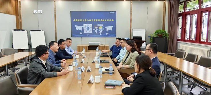 海尔智家供应链人力资源总监毕竹君,人力资源主管、学校2013届校友殷李健热情接待了叶少宝一行。毕竹君对机电学院来访表示热烈欢迎,她介绍了海尔集团的发展历程、产品研发和企业目前人才需求情况,希望与学院联合开展“卓越工程师培训、校企实践基地建设、企业委托横向课题研发等,充分发挥学校的人才资源优势,为解决企业用人需求、创新研发提供持续动力,促进双方深度、持续合作。