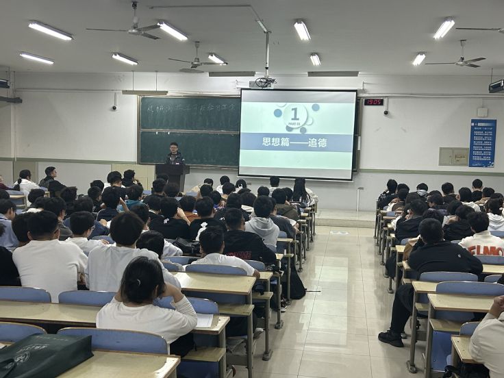 11月7日晚,国家奖学金获得者21机械黄浩天同学、22机械专业第一名毛银鑫和22测控专业第一名陈晓运同学走进东辅楼303教室为23机械和23测控的同学们分享学习经验。