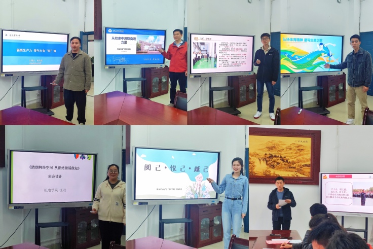 比赛内容包括主题班会方案设计、现场说课两部分,主要考察辅导员对于主题班会的组织策划能力和语言表达能力。学院7名参赛选手们围绕社会主义核心价值观教育、心理健康教育、爱校荣校教育及时政热点,巧妙构思,精心策划,充分利用短视频、问卷调研、互动问答等多种形式,呈现了一堂堂主题鲜明、寓意深刻、精彩纷呈的主题班会,充分展现了学院辅导员扎实的专业素养和良好的精神风貌。