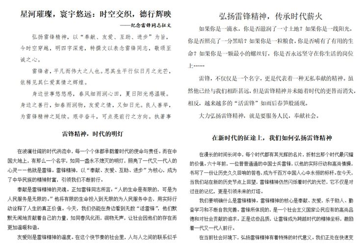 活动一经发布,同学们踊跃参与,以征文的形式表达了对雷锋精神的赞同和歌颂,以及学习雷锋精神的决心。在对全部作品进行评选后,蔡传度、帅锦泽等人获得一等奖;赵子俊、陈诗语等人获得二等奖;邵上医、刁忠宇等人获得三等奖;李流金、黄凤珍等人获得优秀奖。