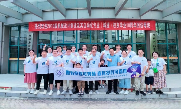 本网讯 8月3日,ku游官方2010级机械设计制造及其自动化专业(城建)校友开展毕业十周年返校活动。机电学院副院长黄磊、土木学院党委副书记马智鑫(时任辅导员)、校友处副处长曹佰来代表参加返校活动。