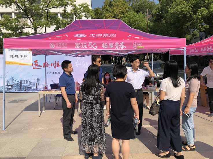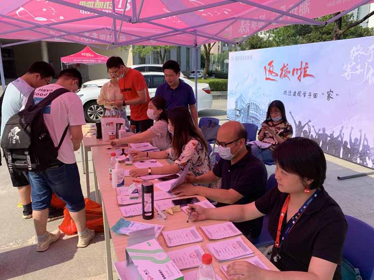 为了让返校学生感受到“家”的温暖,建规学院多次召开会议,研究、部署老生返校接待工作。学院提出“像迎接新生一样迎接老生返校”理念,专门制作了“返校啦——欢迎建规学子回家”主题喷绘,并在建筑馆门厅电子屏滚动播放开学季专题海报。返校报到当天,学院领导、辅导员老师、学生志愿者悉数化身“接待员”,帮助学生搬运行李,艳阳高照、汗流浃背,老师们、同学们的脸上却洋溢着灿烂的笑容。