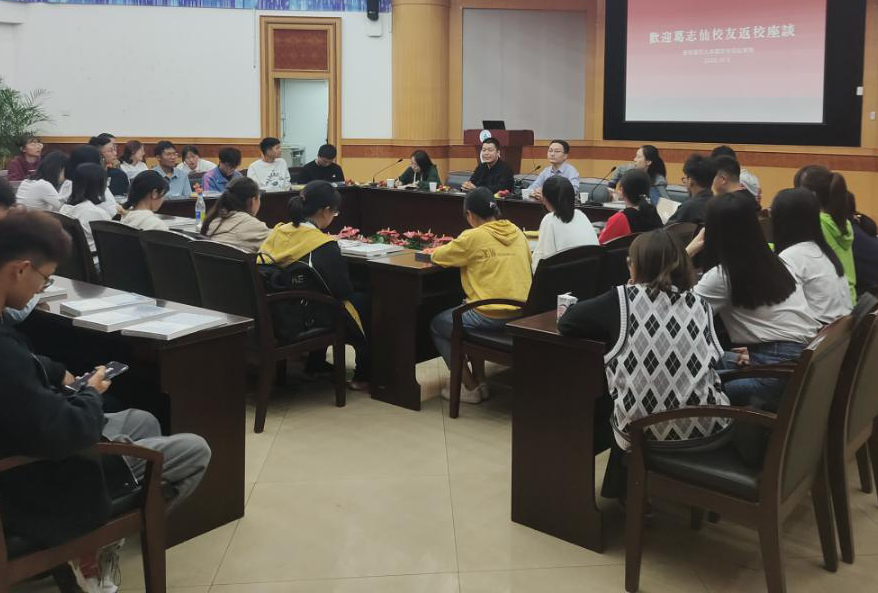 会议进行到热烈时,葛志仙将话筒递给台下的学弟学妹们,2020级新生们纷纷举起手来对葛校友发言提问。有的同学对行业前景提出疑问,有的同学对葛校友的创业经历表示好奇,还有些学弟学妹向葛校友倾诉了自己在学习生活中遇到的困惑。