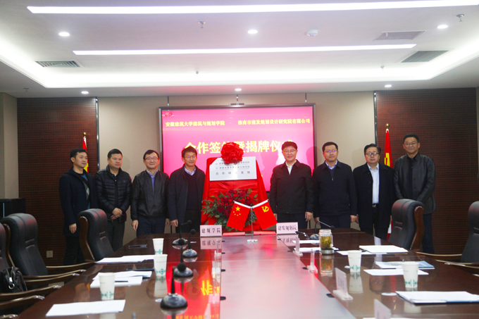 揭牌仪式前,建规学院吴运法院长和淮南市建发规划设计研究院院长吴旻签订了院企合作框架协议。与会领导围绕高校与地方企业合作的优势,从建设发展、科研合作、研究方向等进行了座谈研讨,提出了宝贵意见。