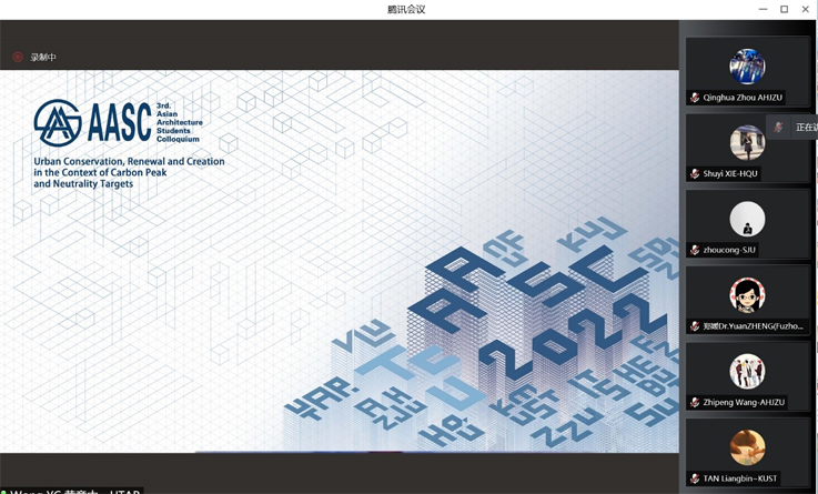 本网讯 4月14日,2022年第三届亚洲建筑学生论坛(3rd.Asian Architecture Students Colloquium)开幕式在线上成功举行。我院王薇教授、周庆华教授、王志鹏博士应邀参加了本次论坛的开幕式。