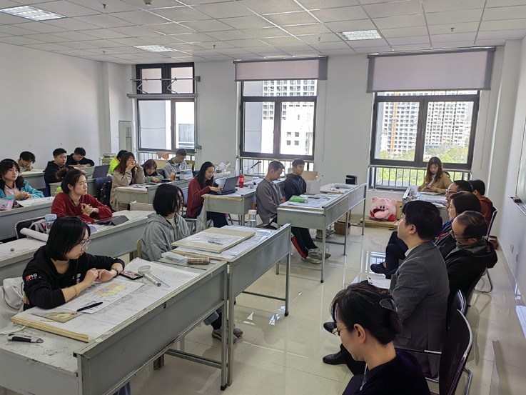 李早在实训综合楼听取《建筑设计基础1》等课程讲授,与任课老师充分沟通,认为授课老师教学准备充分、课堂气氛活跃、课堂组织高效,积极引导了学生思考、互动交流。李早观看了同学们的建筑模型制作,启迪同学们作更高质量、更深层次的理性探究,更好地理解建筑设计的艺术表达,勉励同学们珍惜时光,在学习中提升自我,在奋斗中实现价值。