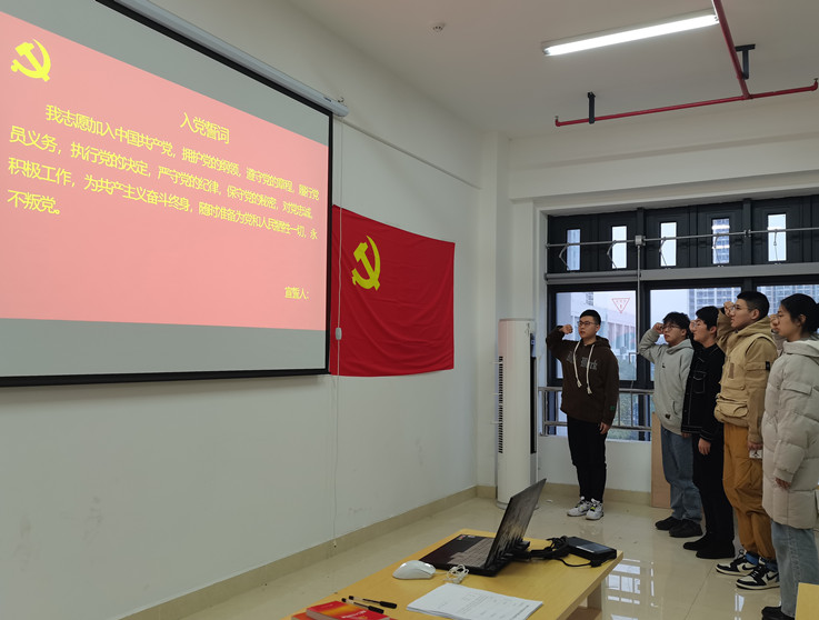 鲜红的党旗下,在党支部组织委员程翟同志的领誓下,中共预备党员代表紧握右拳,面对党旗,重温入党誓词,回忆入党宣誓时的郑重承诺,眼神坚定,庄重严肃。通过重温入党誓词,从中汲取奋进力量,激励各位党员在新征程上永葆初心、勇担使命、终身践行入党誓词,立足岗位、履职尽责、践行使命,努力做新时代合格的“答卷人”。