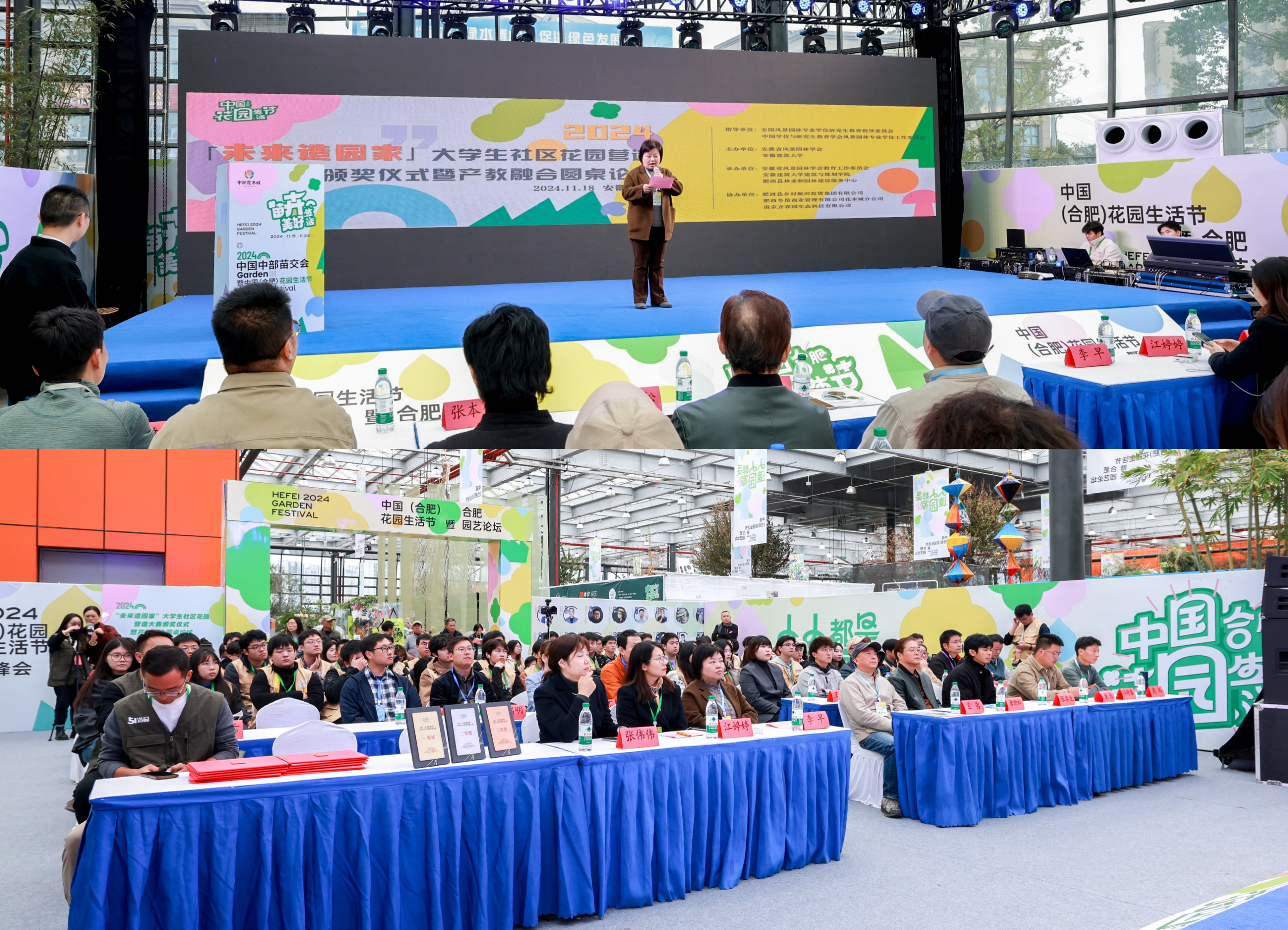 本网讯 11月18日,由全国风景园林专业学位研究生教育指导委员会、中国学位与研究生教育学会风景园林专业学位工作委员会共同指导,安徽省风景园林学会和ku游官方联合主办的2024“未来造园家”大学生社区花园营造大赛颁奖仪式暨产教融合圆桌论坛在中国中部花木城顺利召开。校党委常委、副校长李早、建筑与规划学院党委书记唐劲松、安徽省风景园林学会理事长王勇等受邀出席活动,来自安徽、江苏、山东三省12所高校的师生以及企业代表80余人参加论坛。活动由安徽省风景园林学会教育工作委员会主任委员聂玮主持。