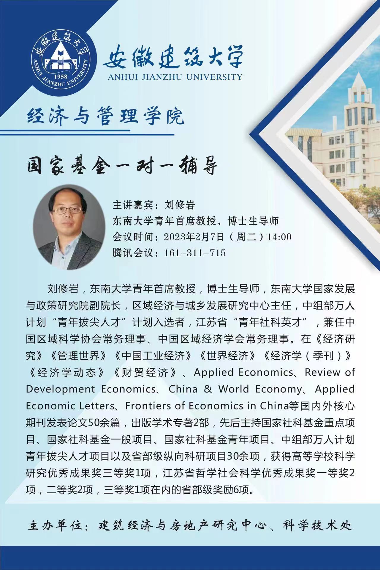2023年第7场学术报告:经济与管理学院:国家基金一对一辅导