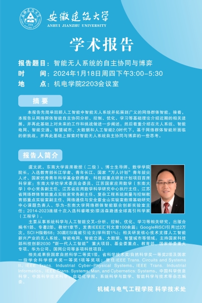2024年第6场学术报告:智能无人系统的自主协同与博弈