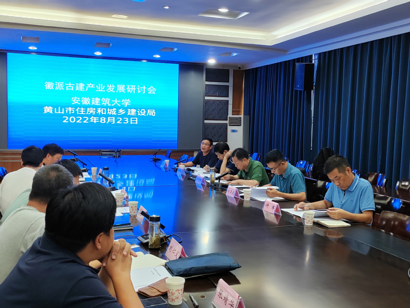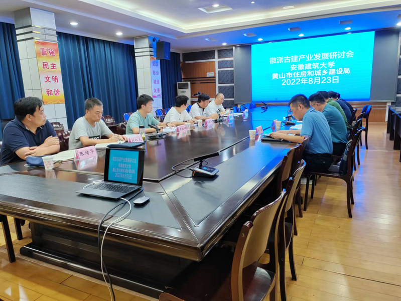 2022年8月23日,ku游官方(徽派建筑安徽省重点实验室)和黄山市住房和城乡建设局联合组织在黄山市召开“徽派古建产业发展研讨会”。会议邀请了安徽省城市规划学会理事长吴晓勤、安徽省城建设计研究总院股份有限公司所长刘亚东、黄山市城市建筑勘察设计院院长陈继腾、黄山市徽派古建产业集团董事长许军、安徽省徽州古典园林建设有限公司总经理程忠平、黄山市住房和城乡建设局及徽派建筑安徽省重点实验室等相关人员共15人参加研讨。本次会议内容是配合第二届“黄山国际徽派古建产业发展大会 ”(以下简称产业发展大会)的前期研讨会。