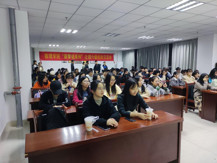 为响应习近平总书记在与青年大学生座谈讲话及回信中提出的热切寄语和希望,引领数理学子传承和弘扬中华优秀传统文化,形成系统科学的学习观。数理学院以朋辈为主体,力求构建科学的朋辈学习系统,鼓励数理学子以班级为单位形成学习互助小组、读书分析小组等群体,在朋辈群体中感受美好的学习生活。朋辈学习活动中还囊括了读书分享会、四六级经验分享、考研经验交流等各类学习活动,旨在以丰富的学习经验为同学们指明学习方向,提高同学们的学习主动性和学习能力。
