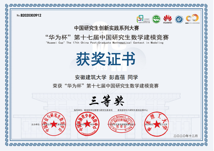 近日,由教育部学位与研究生学会等主办,华东理工大学承办的2020年“华为杯”第十七届中国研究生数学建模竞赛圆满落下帷幕,评选结果已于日前公布。