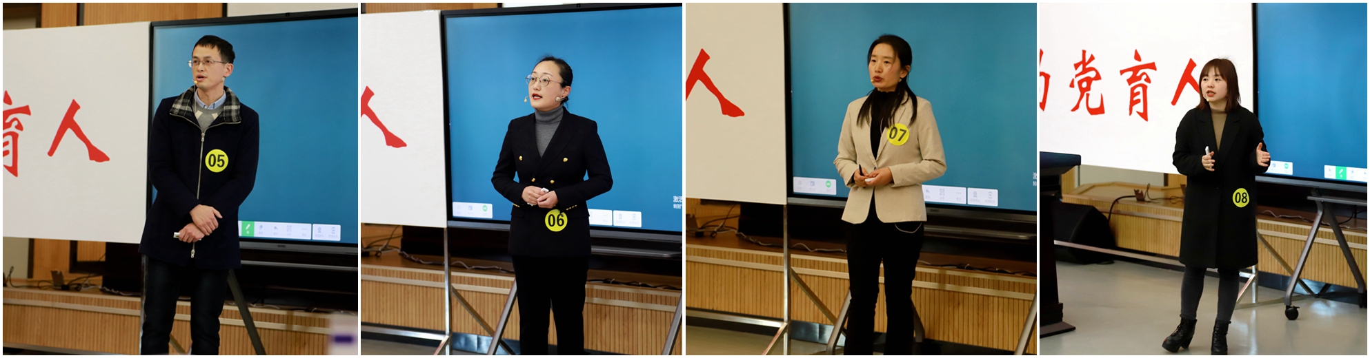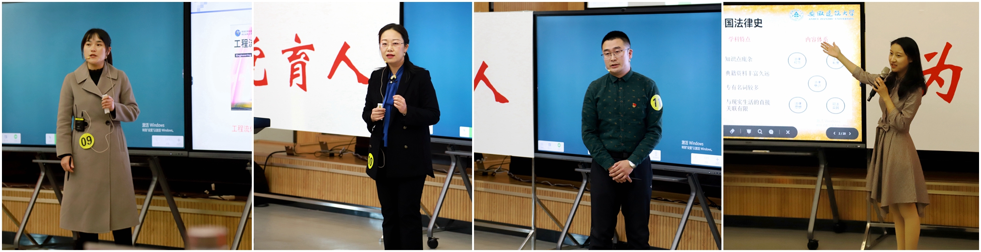 本次课程思政教学比赛从10月中旬启动,教师发展中心等部门组织300位教师参赛,经过院级初赛、校级预决赛、校级决赛,最终,校党委副书记、校长孙道胜宣布材化学院马婕等6名老师获得一等奖,土木工程学院葛大丽等10名老师获得二等奖,土木工程学院付佳丽等20名老师获得三等奖。