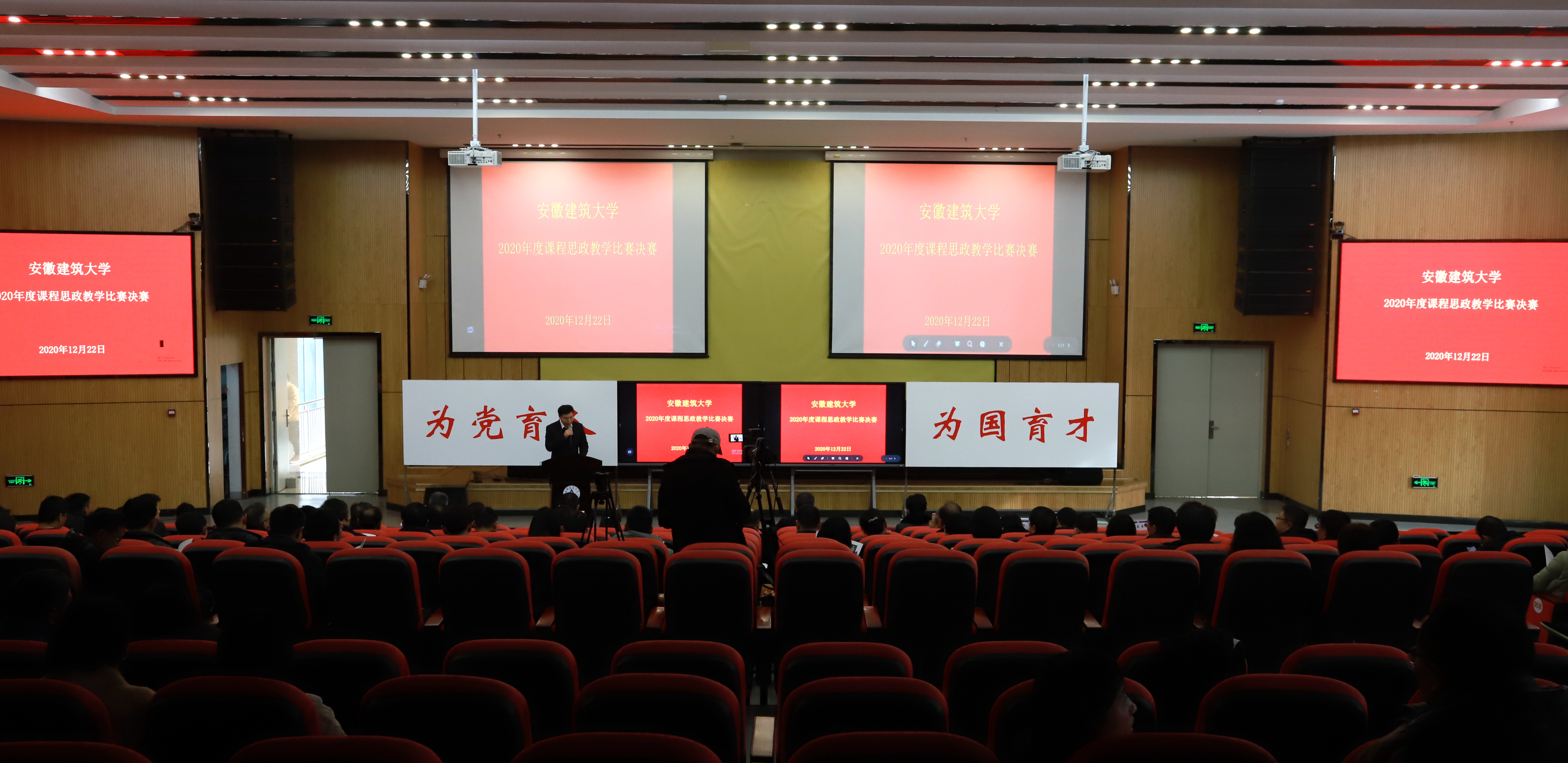 本网讯 为深入学习贯彻全国高校思想政治工作会议、全国教育大会、学校思想政治理论课教师座谈会等会议精神,落实立德树人根本任务,12月22日,学校党委理论学习中心组在南区实验综合楼二楼报告厅召开了一场别开生面的学习扩大会议。校党委委员,各基层党委(党总支)书记,各学院(部)党政主要负责人、机关各部门主要负责人走进课堂,全程观摩学习2020年度课程思政教学比赛决赛。副校长黄显怀主持会议。