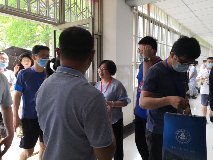 阅卷老师报到当天,由学院党员师生组成的接待工作组分布在三个报到点为阅卷教师办理报到手续。核查材料、办理手续、填写信息、物品领取,接待工作有序开展。