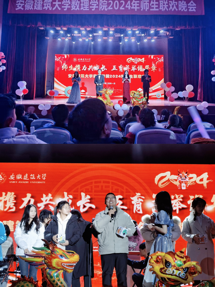 本网讯 一元复始,万象更新。为深入学习贯彻习近平新时代中国特色社会主义思想,培养德、智、体、美、劳全面发展的新时代优秀大学生。1月8日晚,数理学院2024年“师生协力共成长,五育并举谱华章”师生联欢晚会在大学生活动中心成功举办。学院党政领导、师生代表四百余人欢聚一堂,共赏晚会。