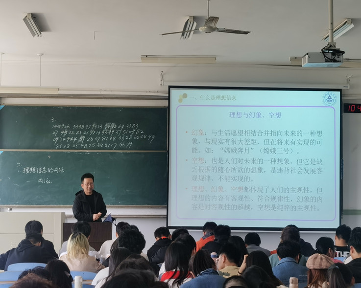 朱其东从理想信念的概念、内涵和特征入手,阐述了科学的理想信念是精神之“钙”,希望同学们认识理想信念的重要意义,坚定科学的信仰,为一定的社会理想和生活目标而不断努力奋斗。讲台上,朱老师幽默风趣的语言、娴熟机智的课堂驾驭、丰富多彩的教学手段吸引了学生的热情参与;讲台下,同学们积极响应,运用超星学习通多种功能参与选人、抢答、问卷、讨论、投票等活动,课堂气氛活跃,同学们学习积极性高涨。课后,观摩的老师们与朱其东进行交流,对其教学过程提出了意见和建议。