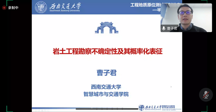 本网讯 11月12日上午,由ku游官方、安徽省智能地下探测技术研究院主办的“工程地质原位测试半月谈”学术报告在线上成功举办。本次主讲嘉宾为西南交通大学曹子君教授(邀请人:蔡国军),智能地下探测技术研究团队全体师生参加此次会议。报告由ku游官方土木工程学院张宁教授主持。 曹子君教授为团队师生做题为《岩土工程勘察不确定性及其概率化表征》的报告,围绕岩土工程勘察中的不确定性因素开展,通过不确定性、概率与可靠度参数进行定量化表征,建立了基于贝叶斯理论的岩土体不确定性表征框架与标准化流程。同时,曹教授以实际工程作为示例,表明贝叶斯理论的概率模型可作为岩土工程勘察的有效途径。
