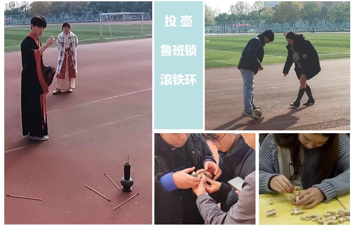 本次活动分为两个部分,第一部分为“社团风采展演”,在主持人介绍完各个社团后,各社团成员依次上台演示才艺。第二部分中,所有社员2-3人自由组队,共同完成各个社团准备的小游戏。“诗词接龙”和“飞花令”让同学们领悟到了中国传统诗词的韵味,投壶、鲁班锁拼装以及滚铁环让大家感受到了传统游戏的趣味性,丰富多彩的小游戏既让新社员们迅速熟悉了起来也加强了同学们的合作团队意识。