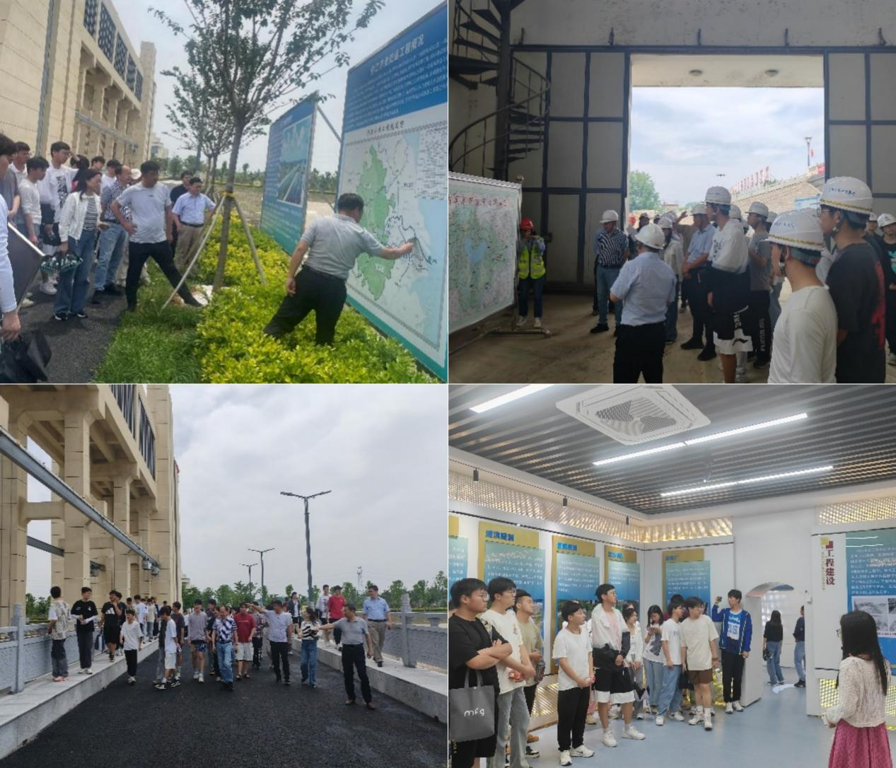 实习第一天,在响洪甸水库和梅山水库实习基地,通过实地参观和技术人员的现场讲解,学生们深入了解了水库、大坝、泄洪闸等水工建筑物的坝型特点、运行管理过程和及其在防洪、供水、灌溉和发电方面的重要作用等,补充和丰富了课堂理论知识。此外,水库管理人员向学生们分享了老一辈水利建设者攻坚克难,铸就伟大水利工程的感人水故事,深深打动了学生,激发了学生的民族自豪感、专业自信心与大国工匠精神。 实习第二天,在引江济淮庐江节制枢纽工程施工现场,学生们了解了这一国家重点工程的总体规划、施工进展和技术难点。庐江节制枢纽作为引江济淮工程的重要组成部分,同时承担水资源调配、航运、生态环保等方面的重要任务。智慧化的工程设施和先进的施工技术让学生们大开眼界。随后,学生们在凤凰颈泵站和凤凰颈引江枢纽现场,参观了水泵站厂房的内部结构和控制系统,进一步学习了水泵站的设计原理和运行管理过程。通过与现场技术人员的交流,学生们也了解了泵站工程在引水、防洪和排涝等方面发挥的重要作用。