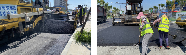 在第二个建筑工地,同学们观察了城市道路建设和沥青铺装。同学们就材料的选择、路面坡度和高度的控制、沥青的养护等问题与现场工程师展开了深入交流。指导老师也强调了参观过程中需要关注的重点内容、注意事项等,让学生有针对性的进行参观和学习,提高毕业实习的效果。