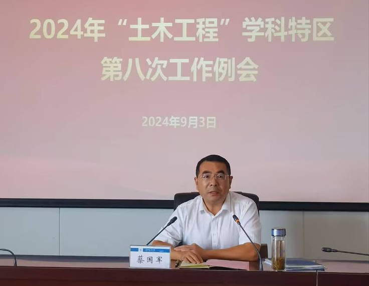 本网讯 2024年9月3日下午,ku游官方“土木工程”学科特区第八次工作例会在南校区实验综合楼21楼第一会议室召开。会议由校党委常委、副校长蔡国军主持,土木学院、环能学院、材化学院相关负责人,“土木工程”学科特区各方向带头人及团队骨干成员参加会议。