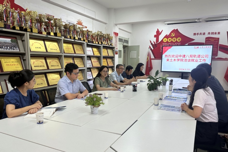 本网讯 9月22日下午,中建八局轨道公司来到土木学院进行就业工作洽谈。此次洽谈由轨道公司浙江分公司安全总监、06级安全工程专业校友周广亮带队,充分体现了校友对母校母院的深厚情谊以及对学弟学妹们未来发展的关心。