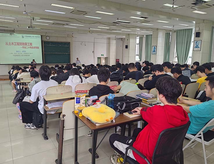 宋晋东以自己毕业二十年的成长经历为主线,围绕迷茫-转折-上升-突破各个阶段心得体会向学弟学妹们做了深情分享,介绍了他从土木工程到地震工程的研究转向,分享了二十年求学科研历程;介绍了他工作单位中国地震局工程力学研究所和他在国家民生发展领域的重大研究突破,也展现了“国家需要则是研究方向”的家国情怀。最后,宋晋东向学弟学妹们提出三点感悟:一是要好好学习,今天的学习是为以后学习工作奠定扎实基础;二是学海无涯,成长道路上需要保持终身学习、持续学习的精神;三是保持良好心态,认真对待生活中的每件事。