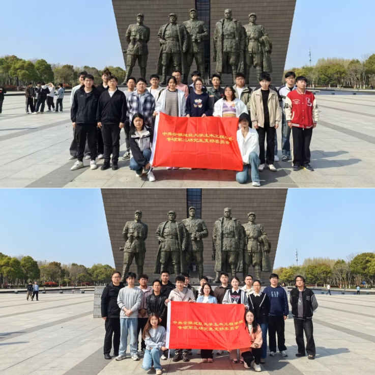 本网讯 为强化党史学习成果,鼓舞研究生党员积极投身时代建设,4月2日下午,土木工程学院土木水利专硕第二、第三研究生党支部联合开展“清明忆英魂、匠心筑未来”主题党日活动,组织全体党员依次前往安徽创新馆、渡江战役纪念馆和安徽名人馆参观学习,在感受工业变迁、缅怀英烈事迹、领略科技成就中坚定使命担当,培育爱国精神。