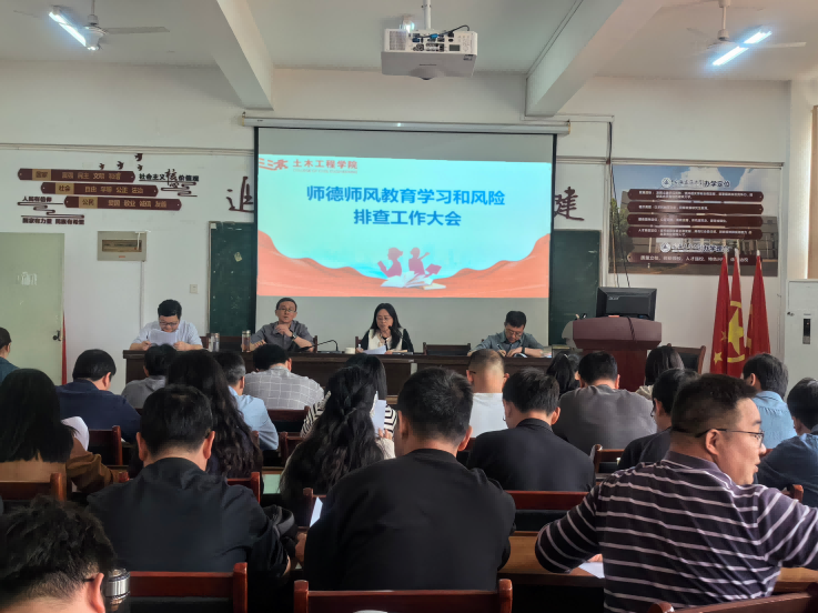 本网讯 为深入贯彻学习全国教育大会精神,全面落实习近平总书记关于教育的重要论述,大力弘扬教育家精神,持续强化师德师风建设,4月9日,土木学院在徽匠楼2306会议室召开师德师风教育学习和风险排查工作大会,学院党委领导班子、全体教职工共同参会,会议由学院党委书记王媛主持。