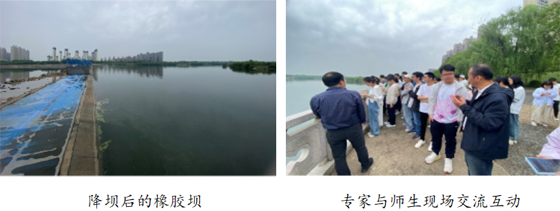 本网讯 2025年4月24日,为加深学生对专业知识的理解与掌握,将课堂理论知识与水利行业实践深度融合,在土木工程学院精心组织下,水利水电专业22级、23级学生及水利科学与工程系全体教师赴安徽省六安市淠河橡胶坝、安徽省佛子岭水库管理处开展系列专业实习及支部共建活动。 24日上午,在带队老师等专家团队的讲解下,同学们深入参观了淠河橡胶坝,了解了橡胶坝这一新型水工建筑物的作用和结构形式。在淠河橡胶坝工程现场,学生们了解了橡胶坝是将高强度胶布锚固于底板上成封闭状的坝袋,通过充排管路用水(气)将其充胀形成的袋式挡水坝,发挥生态、灌溉、发电挡潮等效益。