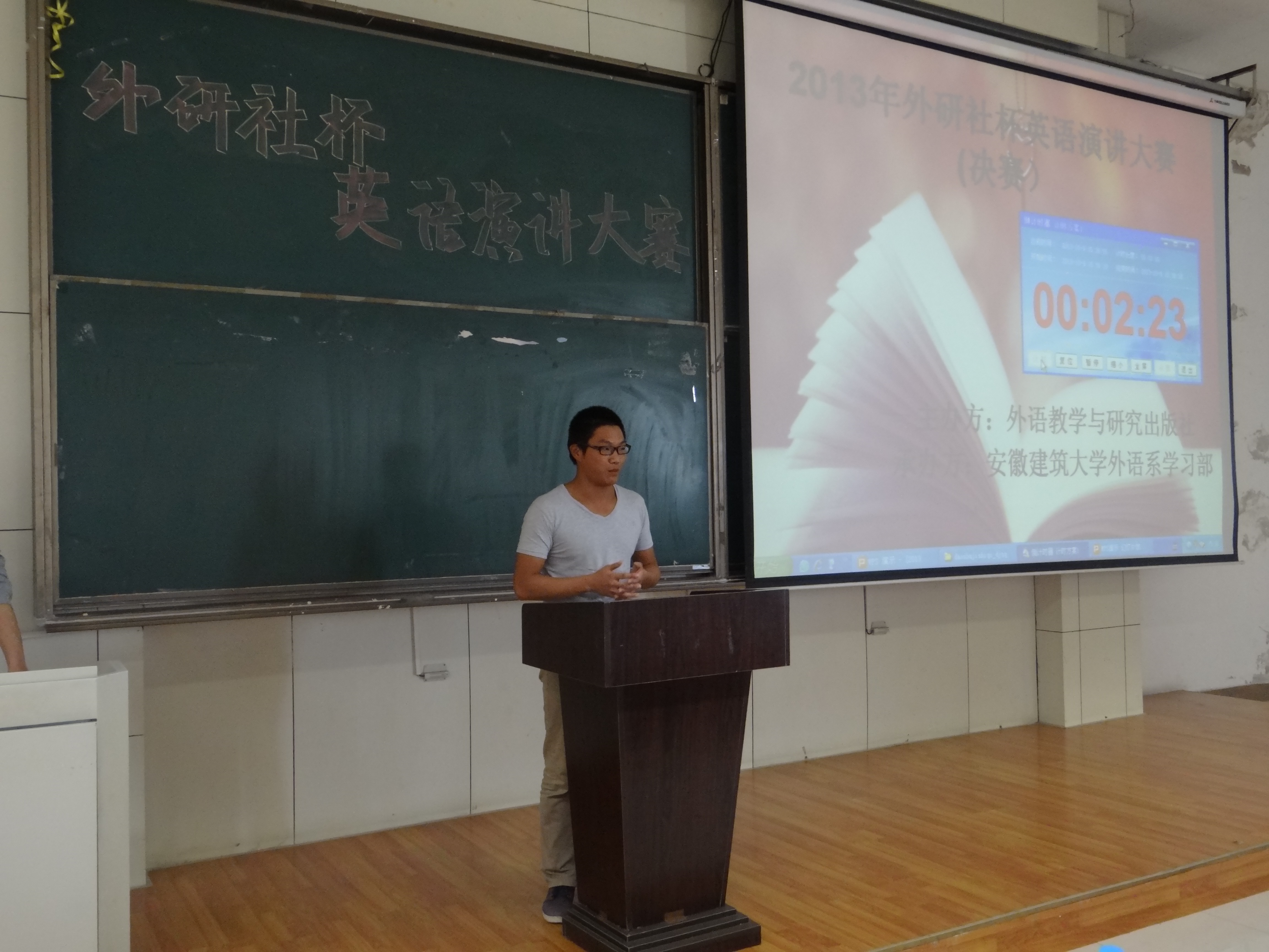 本次英语演讲大赛分为定题演讲和即兴演讲两大环节,重点考察参赛选手的基本功和临场发挥水平。包括公外和英语专业全校共计200余名选手参加预赛,经评委认真评审,选拔公外和英语专业共20名参赛者进入决赛,决赛选手分为专业组和非专业组,评委组由外教和外语系老师组成。经过一系列紧张激烈的角逐,外语系10级外语系王力同学和12级建规学院曾冰玉同学分获专业组、非专业组一等奖;而10级外语系梁倩倩、11级外语系何锡钱和11级环能学院许恩泰、12级机电学院赵紫堂分获专业和非英语专业二等奖。王力、曾冰玉将代表我校参加 “外研社杯”全国英语演讲比赛安徽省复赛。