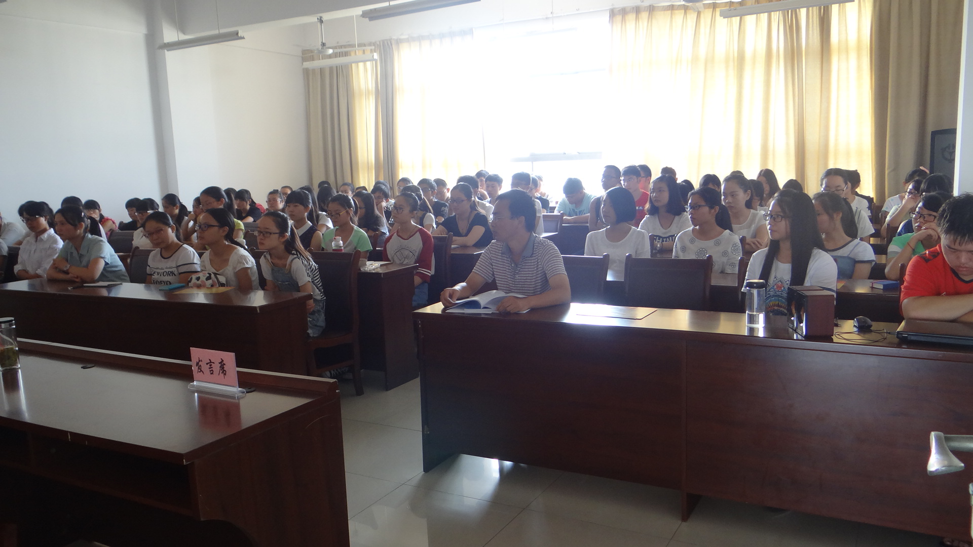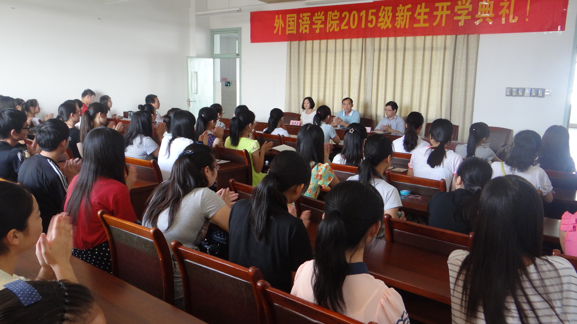 本网讯 9月8日上午8:30,外国语学院在主教学楼1712会议室举行了2015级新生入学典礼暨入学教育。外国语学院院长林莉兰、副院长徐春山出席典礼,学院团总支书记、辅导员以及2015级全体新生参加了典礼。典礼由学院党总支书记龚乃胜主持。