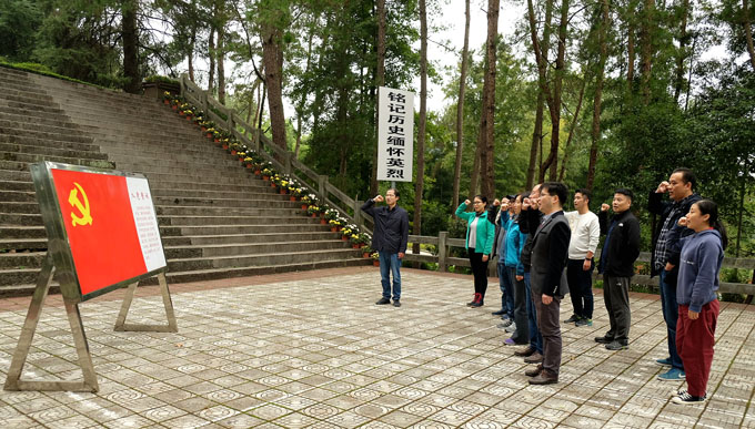 在大别山烈士陵园,全体党员向革命烈士纪念碑三鞠躬,深切缅怀革命先烈,向人民英雄致敬;面对鲜红党旗,全体党员庄严宣誓,重温入党誓词。宣誓仪式结束后,全体同志参观了大别山革命烈士纪念馆。在讲解员的介绍下,同志们通过展出的历史图片和实物,详细了解了鄂豫皖边区游击战争的光辉历史和王步文、王效亭、高敬亭等革命烈士的英雄事迹,深感革命胜利的来之不易。